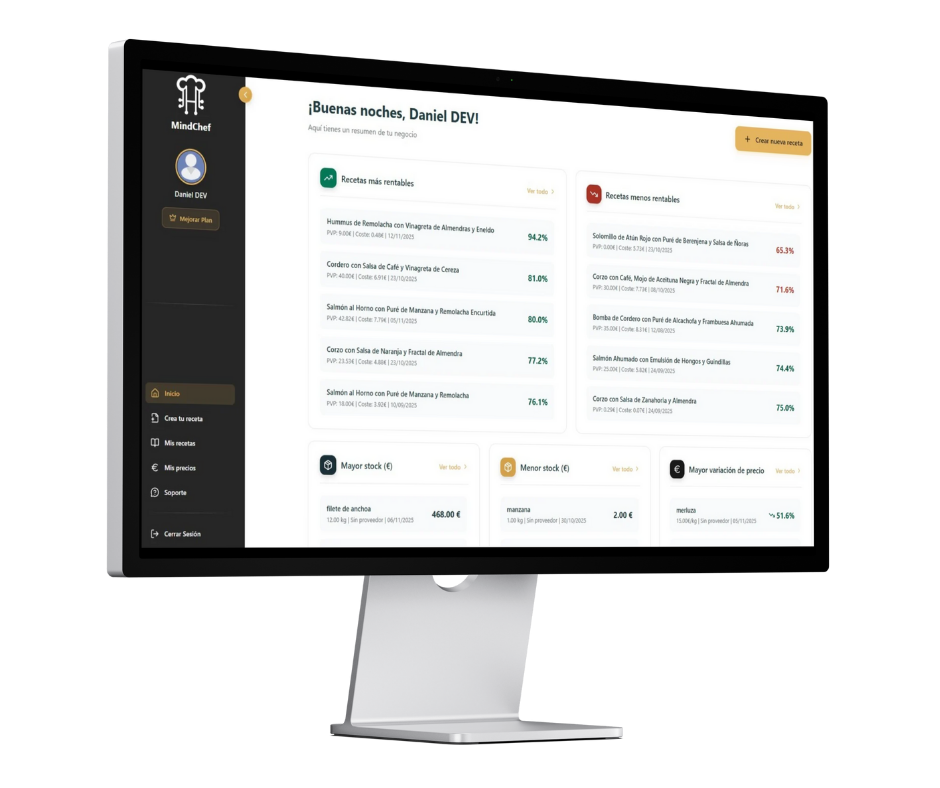 Rentabilidad garantizada en cada plato. Te sugerimos un precio de venta óptimo.