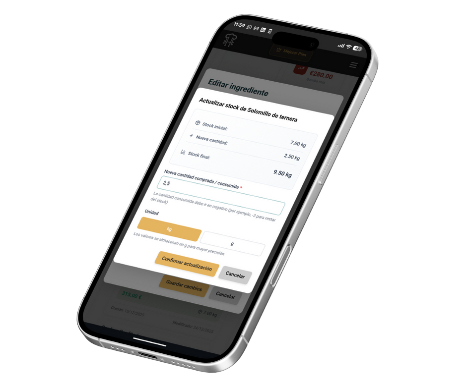 Registra entradas, calcula consumos reales y detecta pérdidas automáticamente. Control de inventario para restaurante diseñado para hostelería.